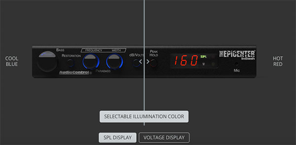 In addition to allowing users to maximize their bass response, the new The Epicenter InDash offers a specially designed microphone mounted on the front panel that can measure up to 160 dB. The SPL is then shown on an LED display on the front panel of The Epicenter InDash. Optionally, users of The Epicenter InDash may select to see their SPL measurement constantly updating or in a peak hold mode. The display also will show the systems power voltage with one tenth volt resolution.