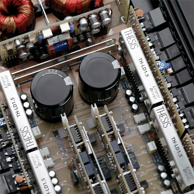 Thesis amplifiers are born with the know-how and experience achieved with the HV venti, improved by the innovation of digital technology. The result is a perfect combination between the highest level of analog technology and the advanced features of the digital technology in one unique product.