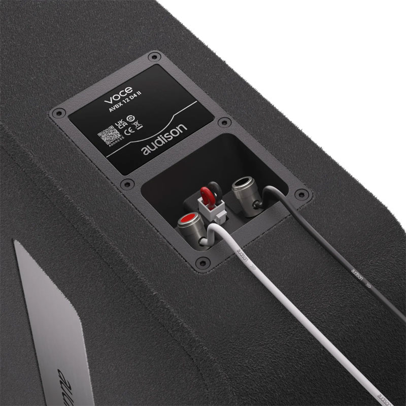The Sub Smart Plug terminal combines Plug-&-Play convenience with traditional push connectors, ensuring fast, secure and high-current-ready wiring.The enclosure’s refined styling reflects the visual identity of the VOCE II speaker line, combining performance and elegance in a single, integrated solution. Compact, precise and ready to perform, the AVBX 12 D4 II is the ideal solution for adding impactful, controlled bass to OEM or custom installations—where space is limited but expectations are high.