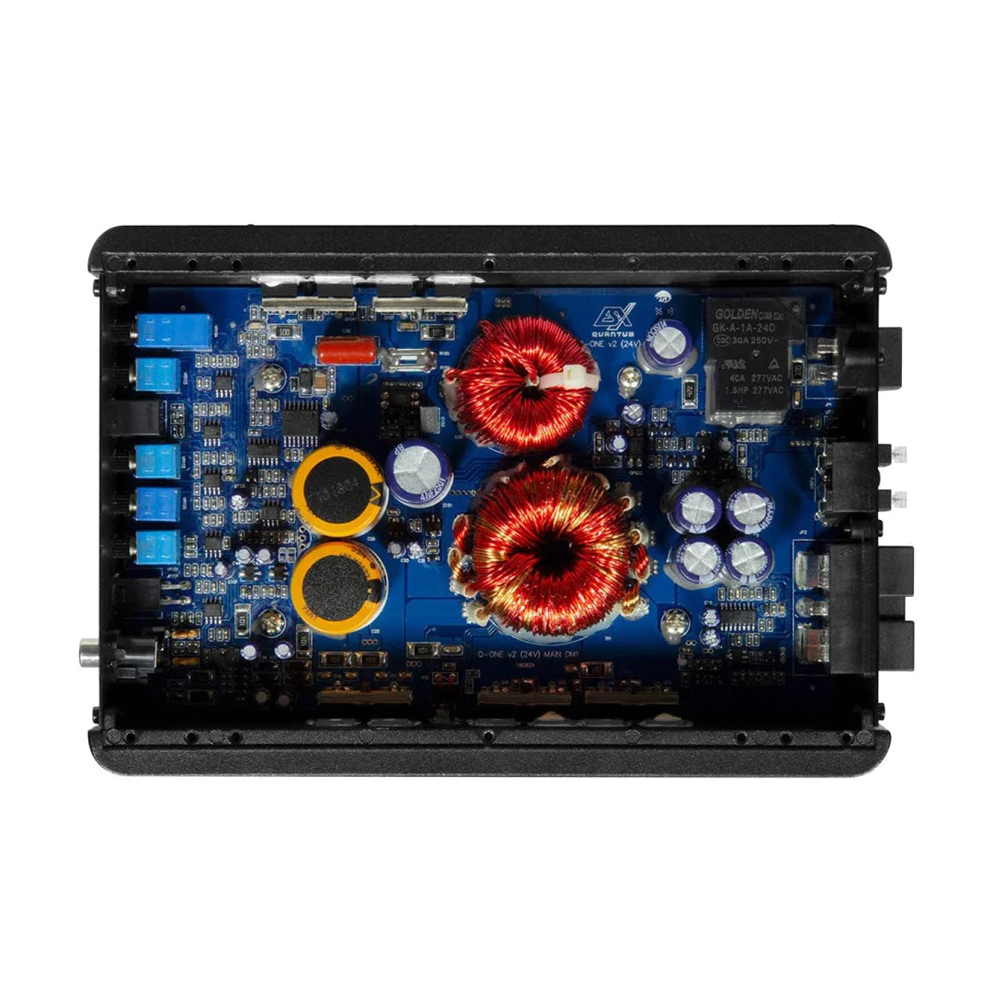 QUANTUM compact class amplifiers are now upgraded to V2 version and offer superior performance and enhanced functionality. With a footprint of only 150 x 220 mm, both power plants are designed entirely as Class D digital amplifiers. Cast iron heat sinks use state-of-the-art digital technology that sets performance standards up to 90%. Thanks to the automatic start function coupled with the high-level inputs, both models are not only suitable for almost any installation due to their size. Q-One and Q-Four are now available in 12V and 24V versions and can therefore be used in trucks and coaches with a 24V on-board network.