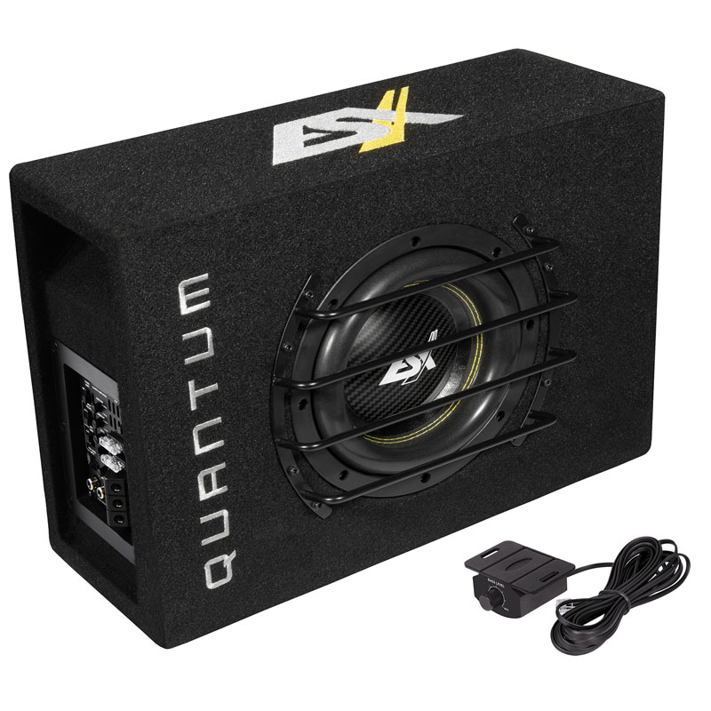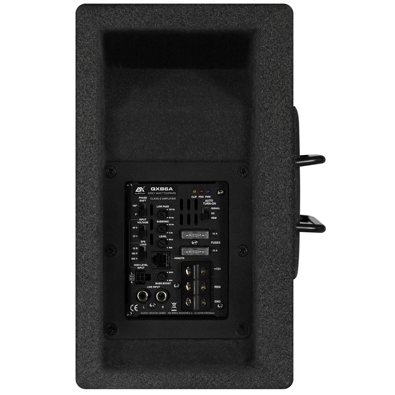 A really good subwoofer system always needs an additional powerful amplifier. If the installation of an external amplifier is too complex or you don’t have the space, you can use active models that already have pre-installed amplifiers. But beware, often for cost reasons, analog power amplifiers that are rather weak or outdated in terms of performance are often installed. Sometimes even the simplest 12 volt bridge chips can be found inside that do no more than simple car radios. ESX takes a different approach here and integrates state-of-the-art Class D amplifier modules that can mobilize up to 400 watts/RMS output power. Equipped in this way, the very compact QUANTUM QXB active subwoofer systems deliver extremely high performance and bass levels.