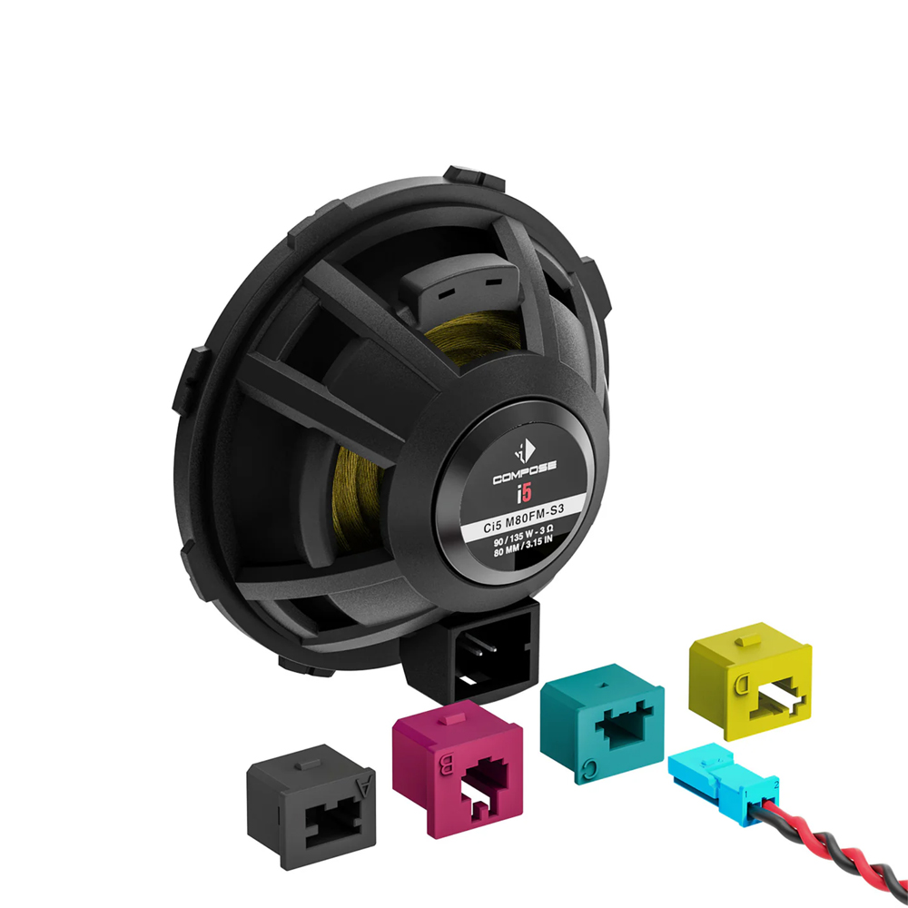Thanks to its significantly reduced outer diameter compared with conventional 3” drivers as well as the FlexMount technology, the Ci5 M80FM-S3 also offers outstanding integration flexibility – even in tight OEM openings, without compromising the cone area size. This makes it perfectly suited for demanding multi-way systems, DSP-optimized setups or vehicles where precise midrange reproduction and a compact form factor are equally important.