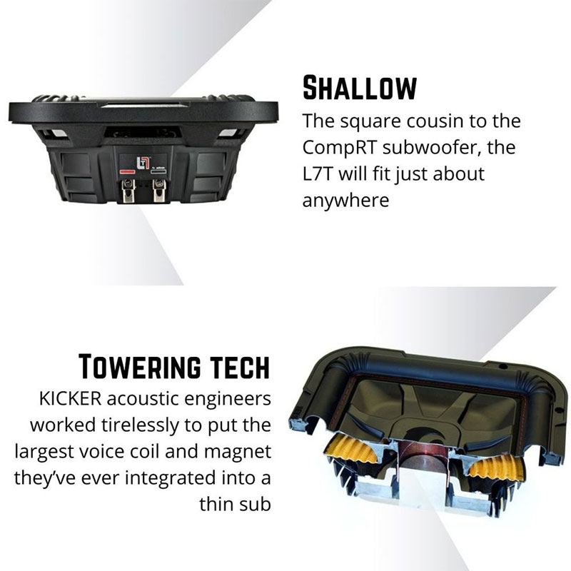 The only thing thin about the L7T thin subwoofer is the mounting depth. These tough subs work perfectly in nearly anything with a motor.