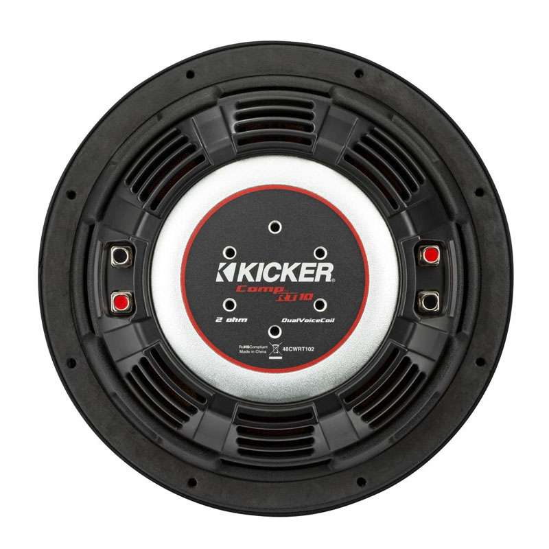 It takes serious know-how for a thin subwoofer to deliver super-deep bass. Our signature red double stitching makes an outstanding bond between the improved Santoprene surround and polypropylene woofer cone. With our custom SoloKon™ technology and the CompRT’s unique framework, the sub sounds fat – but keeps it thin! To make our subs even more reliable, KICKER engineers developed Forced-Air Cooling™ to help our subs run 20 percent cooler than before.