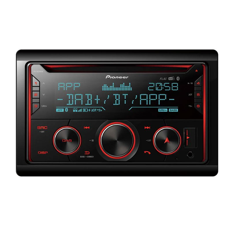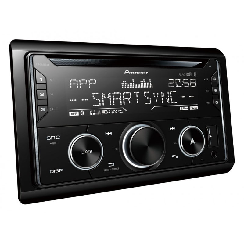2-DIN CD Tuner with DAB/DAB+, Bluetooth, multi colour illumination, USB, Spotify, Pioneer Smart Sync App and compatible with Apple and Android devices.