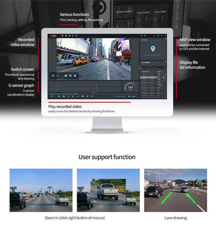 The G-ONX offers seamless playback and analysis of your recorded videos through the GNET PC VIEWER. It includes various functions like zoom, partial zoom, lane drawing, and frame settings. Additionally, you can generate AVI or MP4 files, protect against tampering, view thumbnails, and perform interval repetitive searches. It’s a comprehensive tool that puts you in control of your recorded footage.