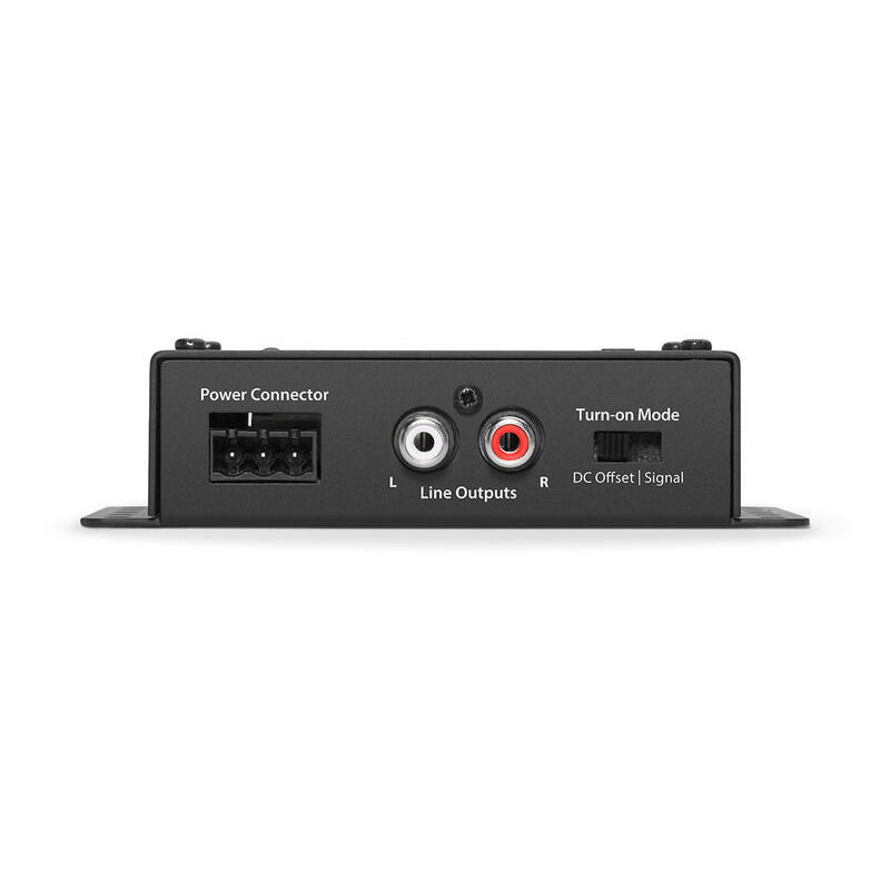 Ideal for full-range or low-frequency applications, the LoC-22 is equipped with a pair of analog RCA-type, line-level output jacks (up to 8V RMS) to feed audio signals to your aftermarket system. Analog outputs are compatible with most types of aftermarket signal processors or amplifiers. Setting output levels is super simple and easy, thanks to a specially calibrated, onboard clipping indicator that works with test tones or music. The LoC-22 offers two automatic turn-on methods (DC-Offset Sensing or Signal Sensing) and provides a positive 12V turn-on output to activate aftermarket amplifiers or other downstream electronics.