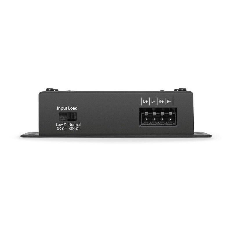 Engineered to combat induced cable noise, the LoC-22 features a differential-balanced input architecture making it compatible with virtually any analog audio signal. Capable of accepting up to 40V RMS per channel (equivalent to 400W @ 4 ohms), the LoC-22 easily handles the most powerful factory amplifier outputs. An onboard dual-range input load switch allows compatibility with most factory amplifiers that employ impedance sensing to mute channels.