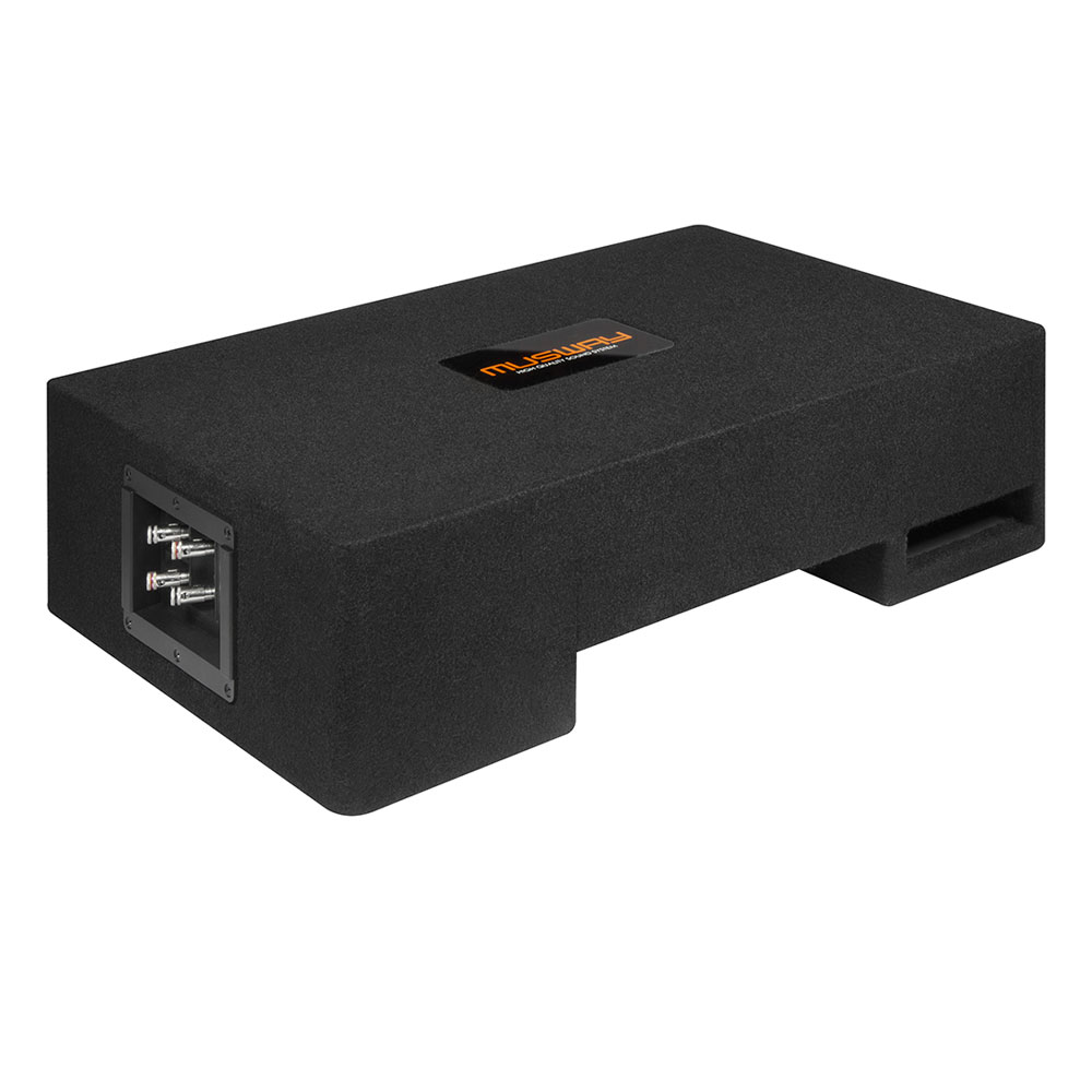 The sturdily designed MDF housings are covered with high-quality black carpet and fit harmoniously and discreetly into every vehicle interior. Furthermore, without exception, all models are equipped with Quick Connect sockets and can be connected easily by using an optional connection cable, for example, to the MUSWAY M6 and its Quick Connect port. Of course, the MUSWAY subwoofer systems can also be connected to conventional push-pin terminals.