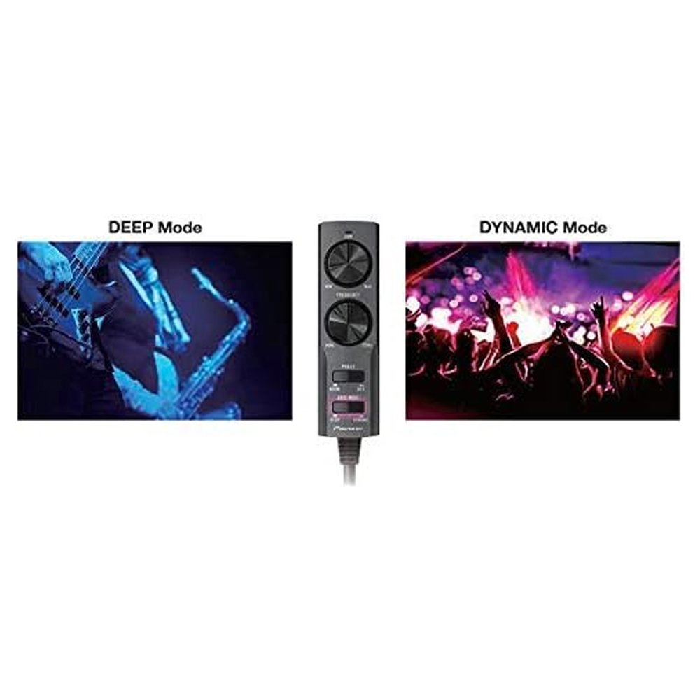 Pioneer launches a new generation Class-D amplified subwoofer integrating DIGITAL BASS CONTROL. This unique feature generates two selectable Bass Modes: DEEP and DYNAMIC, producing 200 Watts of strong, rich, deep bass that you can feel, without giving up your boot space. Users can easily control and customise the two bass modes directly from the supplied wired remote control.