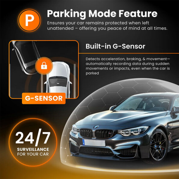 - 2.4GHz Wifi module, G-Sensor 3-Axis, 24/7 Tier-2 Parking Mode