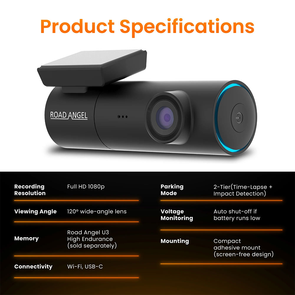 Road Angel Halo Spark Full HD 1080p Single Dash Camera With Parking Mode & Winter Mode (USB-C)