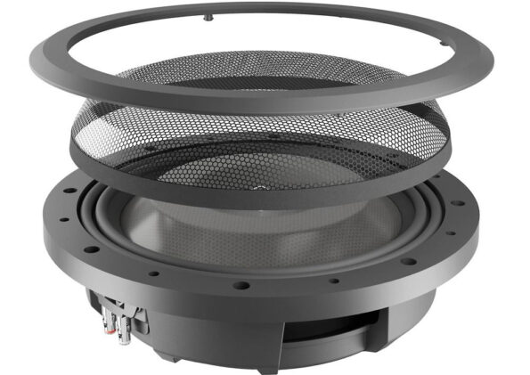 The FEA optimized dual gap motor structure features a massive motor with double stacked strontium magnets. This maximizes flux density and control for an impressive 20mm of linear xmax. The honeycomb cone is made of a composite Nomex® and glass fiber, making it incredibly rigid and very lightweight. The 5” voice coil, available in 2 or 4 ohm, provides a powerful moving force with 750W RMS power handling.